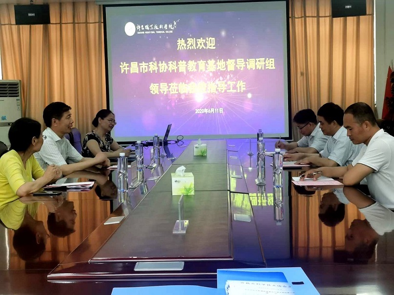 6月11日下午,许昌市科协副主席张春停一行三人莅临我校开展科普教育基地调研。院长谭水木、科研外事处处长李娜陪同调研,科研外事处全体人员参加座谈会。