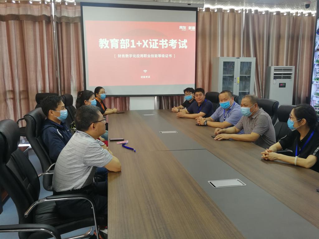 考前工作会议中,beat365体育官方网站副院长郭长庚、教务处长关中梅、项目办主任李志红,财经学院党总支书记刘颖民、副院长宋沛军、财管教研室主任孟康,新道科技股份有限公司中原区总经理张林峰、新道科技股份有限公司河南省区副总经理朱俊锋及技术人员、考务人员共同参加会议。会议中,朱俊锋对考试流程、考务工作准备以及考务人员的培训情况做了汇报。此外,校企双方还对以“1+X”证书的培训和考试作为平台,实现产学研有效融合,服务于地方经济产业发展做了深度交流。