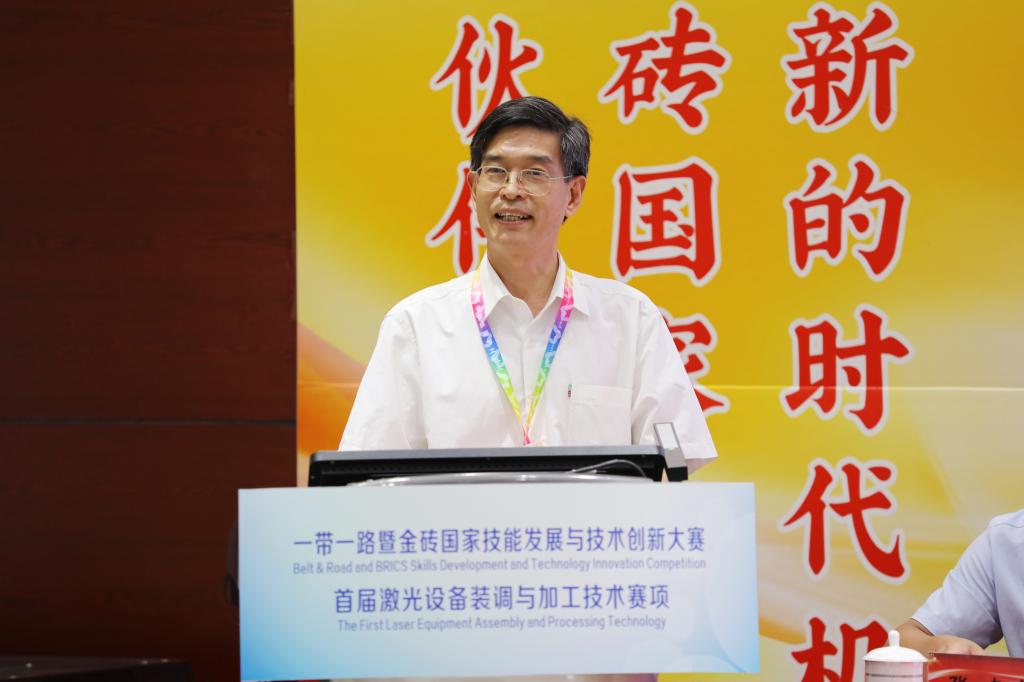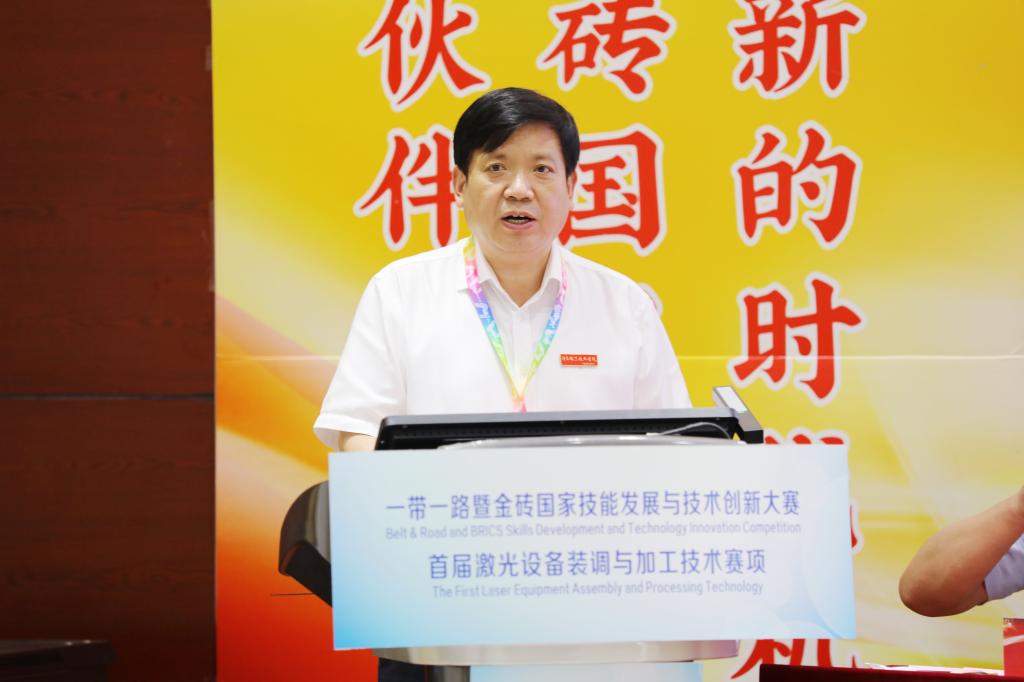 何勇致辞并宣布大赛开幕。他介绍了金砖国家工商理事会成立背景、职责和发展历程。他表示本次大赛是落实五项工作的重要成果之一,通过开发激光技术国际竞赛标准和举办技能竞赛,反映世界技能标准规范所描述的最佳国际实践。引领激光技术紧缺人才培养方向和院校专业转型升级,推动赛事成果转化和产学研用国际合作。