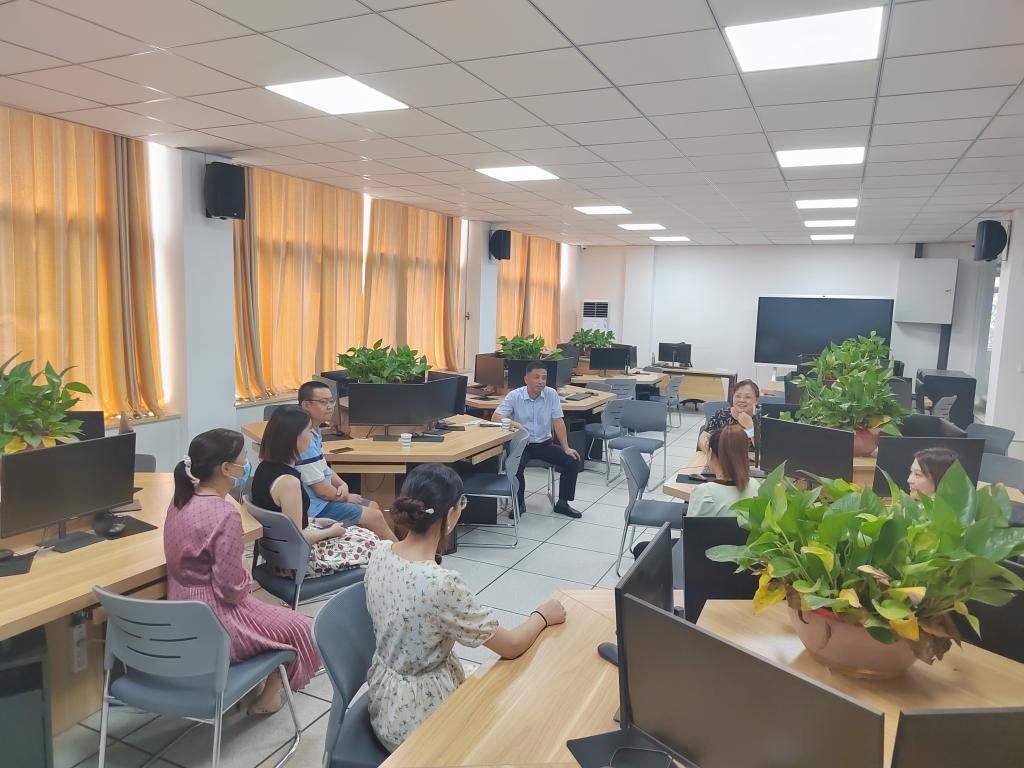 会后,杨富营陪同工作组成员实地考察了师资培训的地点、环境和我校信息工程学院实训基地。在培训基地,工作组根据培训教师名册,随机抽调了五名参训教师现场进行了座谈,详细了解了本次培训的有关事项。
